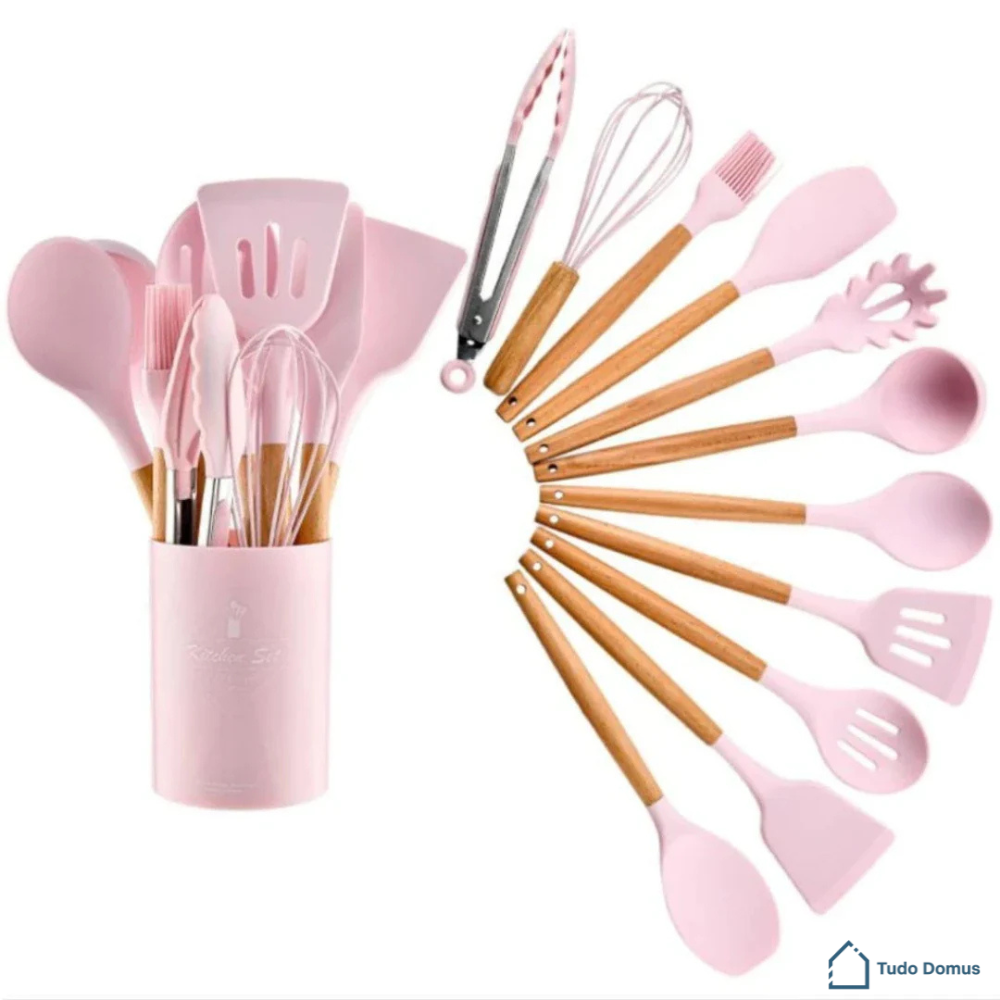 Proteja sua saúde com utensílios de silicone 100% seguro e livre de BPA. Cozinhe sem medo: nada derrete, nada contamina, nada gruda. Cabo em madeira natural que une elegância, conforto e durabilidade.
